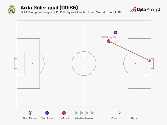 居莱尔开场35秒破门,为皇马自2016年以来欧冠最快进球