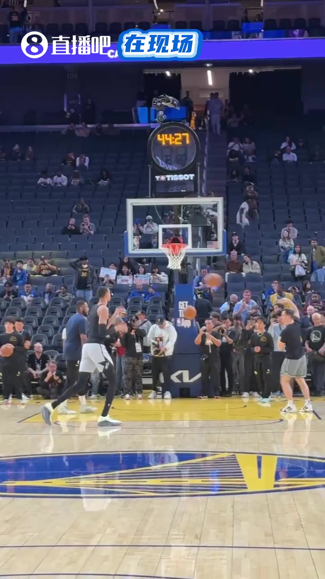 库里赛前热身秀了一记单臂暴扣膝盖看上去是完全没事了